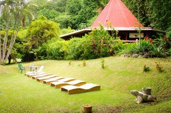 Visitors in our garden at Los Mangos | ![]() Morning Yoga Class at Los Mangos | ![]() The Yoga Pavillion at Hotel Los Mangos |